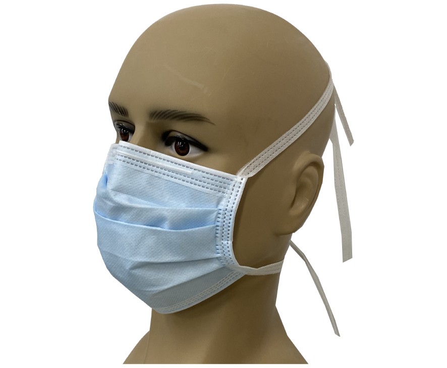 Each mask contains ties to secure the mask over the user’s face and mouth with a bendable nose piece to firmly fit over the nose. This device is not made with natural rubber latex.
